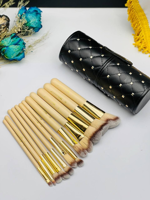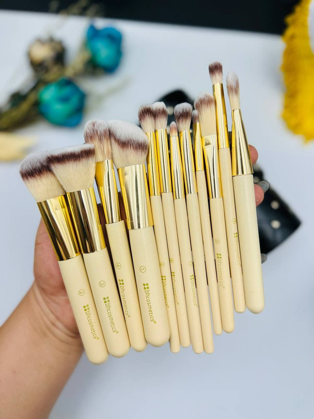ست براش آرایشی بی اچ کازمتیکس BH COSMETICS مدل استوانه ای نگین دار مجموعه 12 عددی